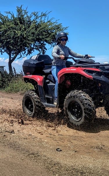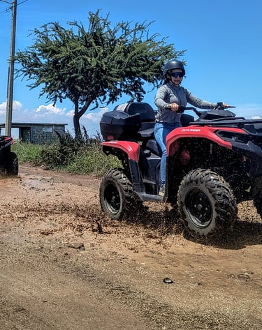 Nuestros recorridos en cuatrimoto están diseñados para ser disfrutados por personas de todas las edades y niveles de experiencia. Cada cuatrimoto es para dos personas, lo que te permite compartir la experiencia con un acompañante.